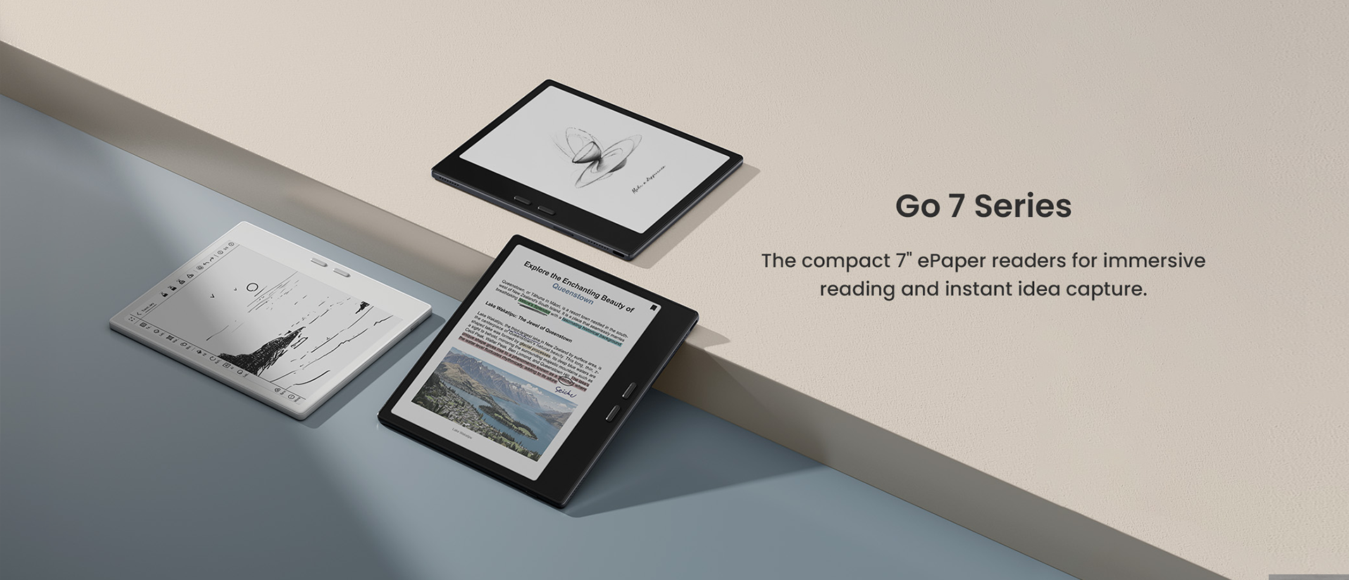 The compact 7" monochrome ePaper readers for immersive reading and instant idea capture.