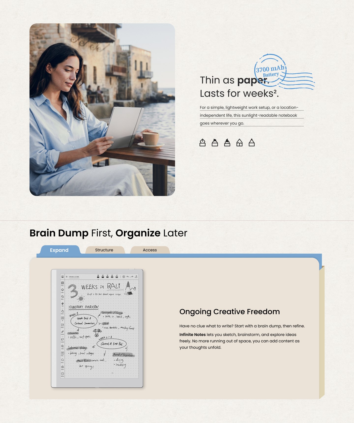 * BOOX is committed to offer free 10GB Onyx cloud storage for all new and existing users. No matter which model you've purchased, you can get free 10GB cloud storage for each Onyx account to store your notes online and keep them safe and sound. ** BOOX is committed to provide free firmware updates for all models for more than 3 years since the product launch date. So every BOOX user can have improved experiences through consistent updates. *** While BOOX devices can help reduce digital eye strain, individual experiences may differ. Prioritize regular breaks and balanced screen time for long-term eye health.