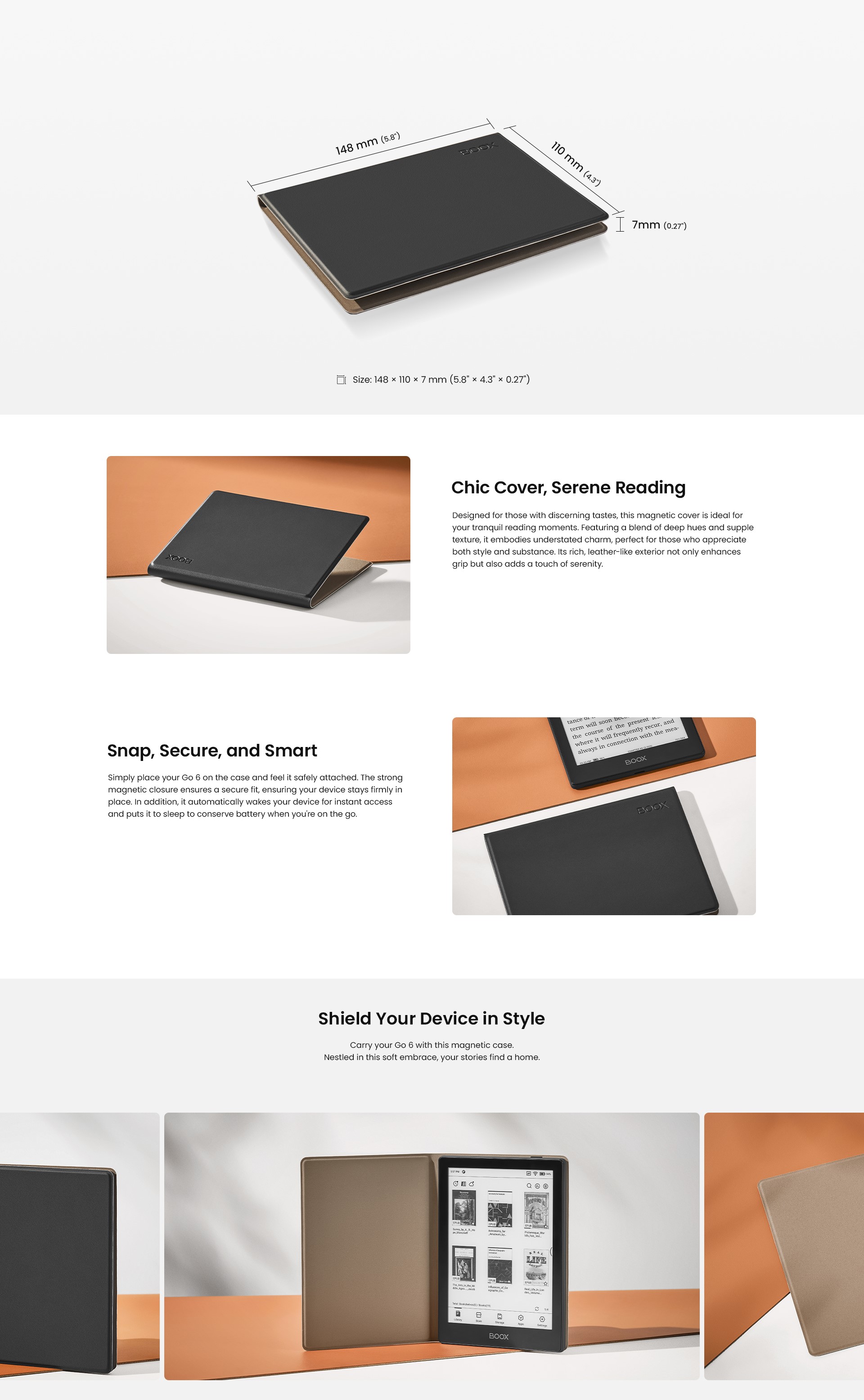 The magnetic case for Go 6 is made of high-quality artificial leather. It provides a comfortable touch and safeguards your device from scratches and bumps. It offers an auto sleep/wake feature and strong magnetic closure, ensuring convenience and protection.