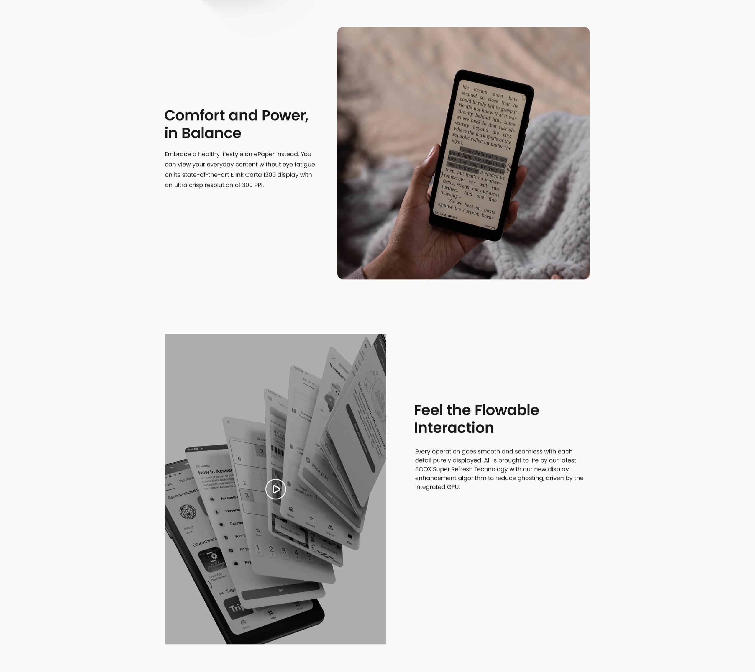 - Screen: 6.13″ HD Carta 1200 glass screen with flat cover-lens