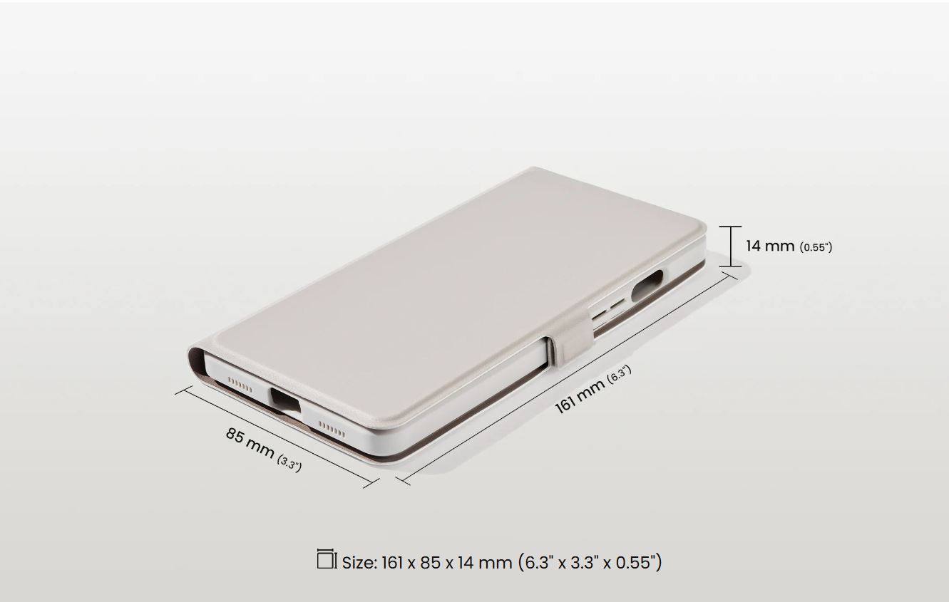- Dimension: 161 x 85 x 14 mm (6.3" x 3.3" x 0.55")